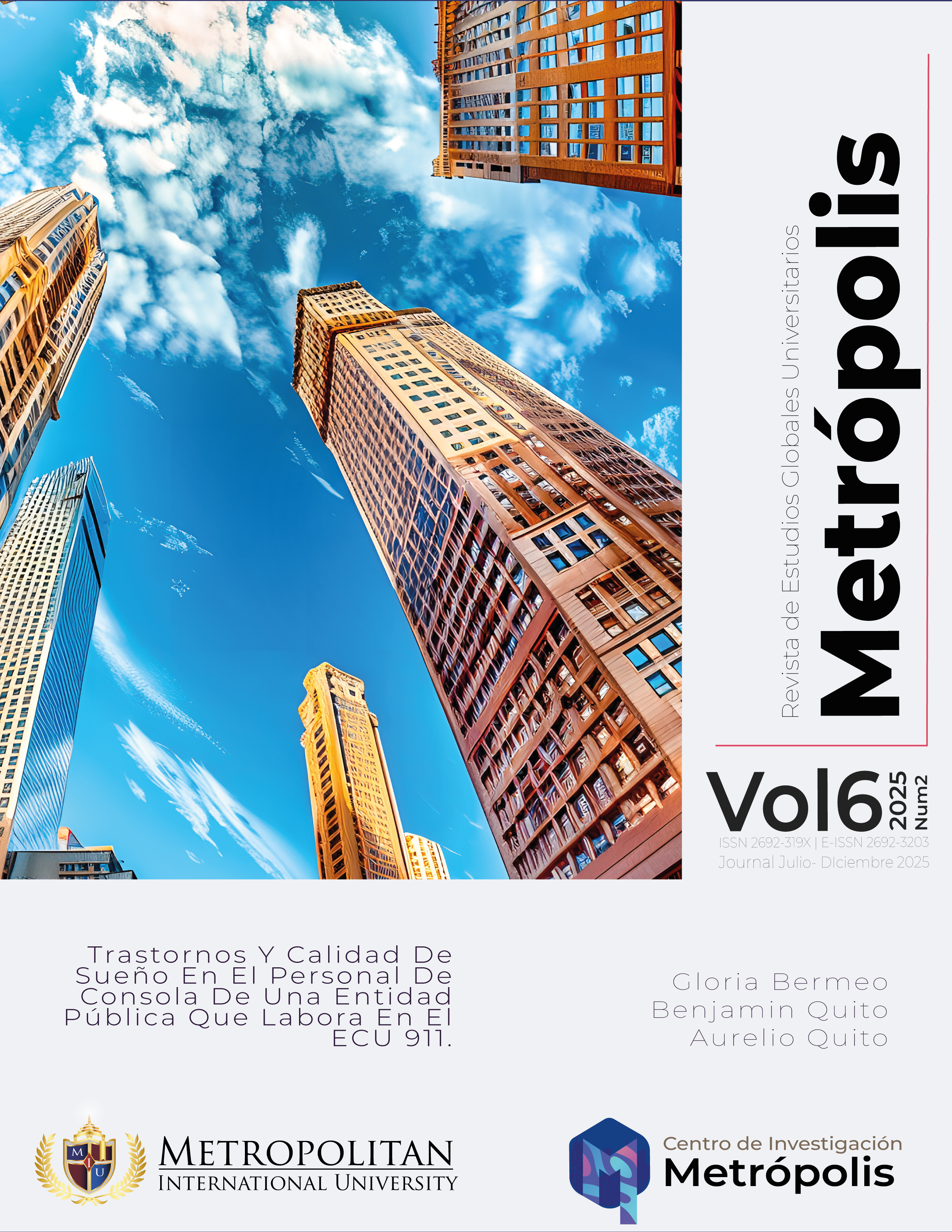 Bermeo Casanova, G. del C. ., Quito Cortez , B. G. ., & Quito Álvarez , A. I. (2025). Trastornos Y Calidad De Sueño En El Personal De Consola De Una Entidad Pública Que Labora En El ECU 911. Metrópolis | Revista De Estudios Universitarios Globales, 6(2), 45-96. Recuperado a partir de https://metropolis.metrouni.us/index.php/metropolis/article/view/253